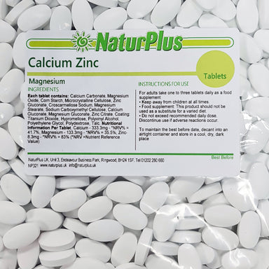 View full detailsCalcium, Magnesium and Zinc vegetarian and vegan tabletsSizes: 180, 365 and 1000 tablets.NaturSupps Calcium, Magnesium and Zinc tablets.A potent fo...