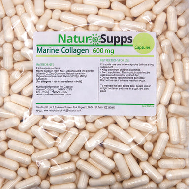 Size available: 90, 180, 365 and 1000 capsules. NaturSupps Marine Collagen 600mg A high potency 600mg of Marine Collagen in resealable bags. WHY...