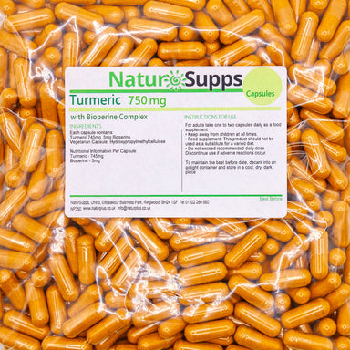 Sizes available: 90, 180, 365 and 1000 capsule bags. Turmeric Curcumin 745mg, 90, 180, 360 and 1000 Capsules with 5mg BioPerine, vegetarian and veg...
