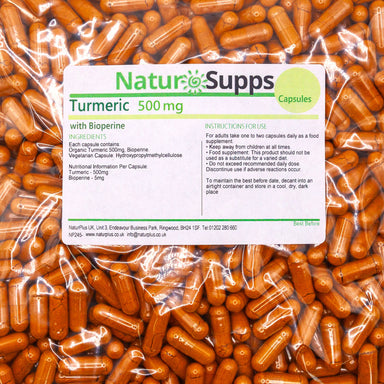 Sizes available: 90, 180, 360 and 1000 capsule bags. Turmeric Curcumin 500mg, 90, 180, 360 and 1000 Capsules with 5mg BioPerine, vegetarian and ve...