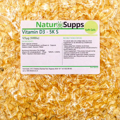 NaturSupps Vitamin D3 5000IU high potency softgel capsules.Vitamin D is essential for several functions within our bodies. We get some from our die...